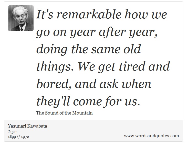 It's remarkable how we go on year after year, doing the same old things. We get tired and bored, and ask when they'll come for us.