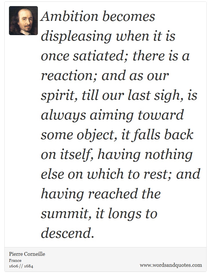Ambition becomes displeasing when it is once satiated; there is a reaction; and as our spirit, till our last sigh, is always aiming toward some object, it falls back on itself, having nothing else on which to rest; and having reached the summit, it longs to descend.