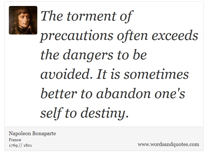 The torment of precautions often exceeds the dangers to be avoided. It is sometimes better to abandon one's self to destiny.