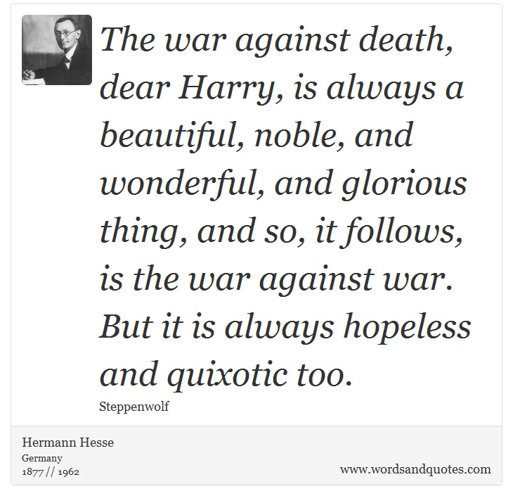 The war against death, dear Harry, is always a beautiful, noble, and wonderful, and glorious thing, and so, it follows, is the war against war. But it is always hopeless and quixotic too.