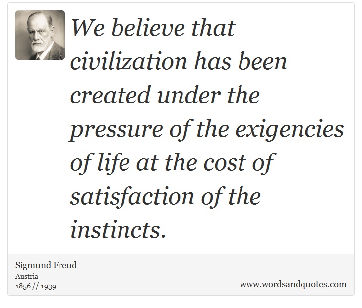 We believe that civilization has been created under the pressure of the exigencies of life at the cost of satisfaction of the instincts.