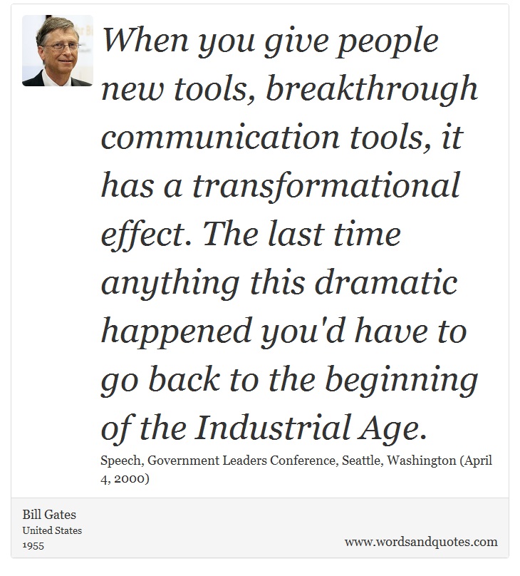When you give people new tools, breakthrough communication tools, it has a transformational effect. The last time anything this dramatic happened you'd have to go back to the beginning of the Industrial Age.